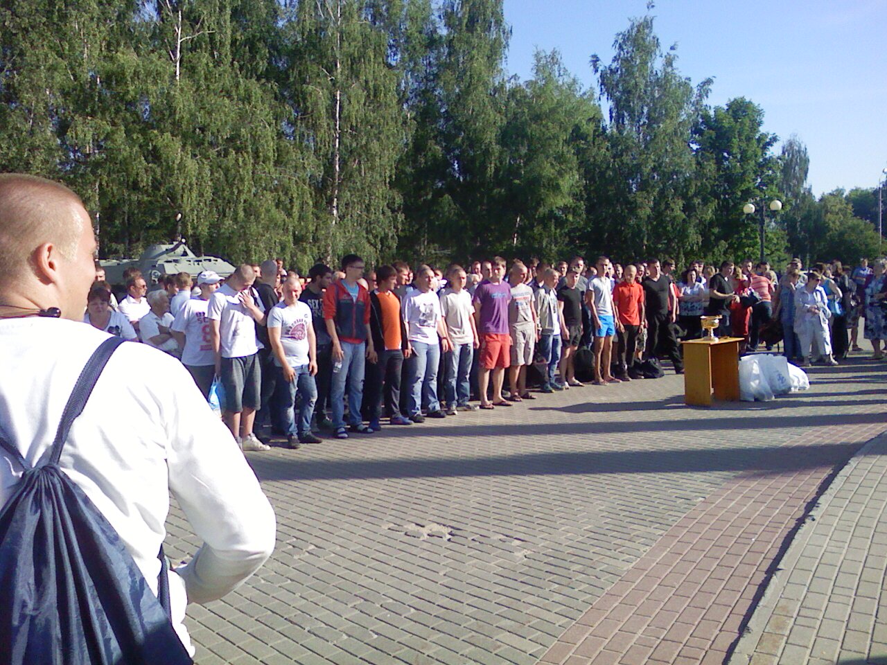 Наш солдат по центру, в серых шортах: