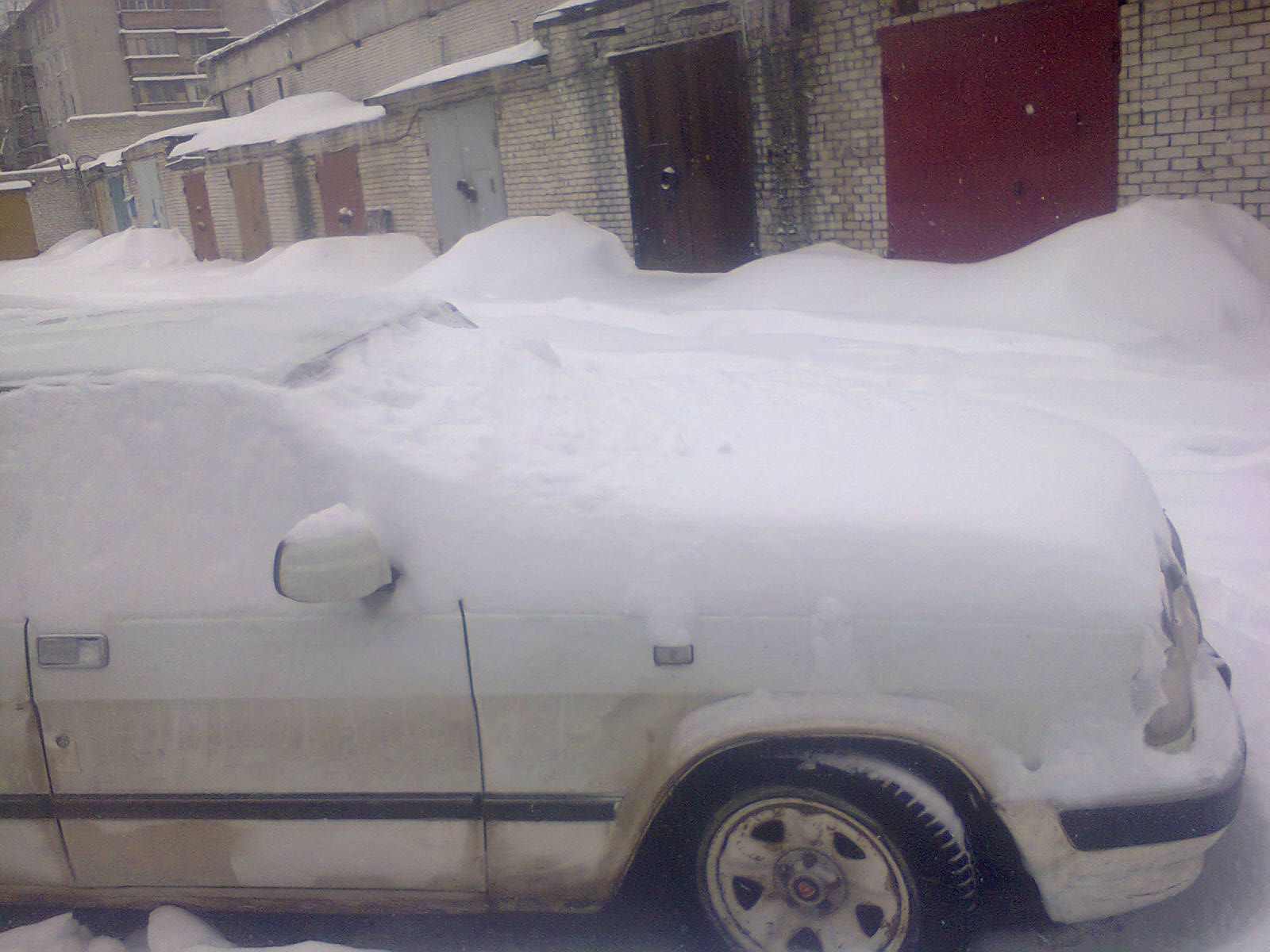 Хотел сегодня скататься за запчастюльками и ОКУ (напомню, это мой подменный автомобильчик) привести в порядок, НО вышел на улицу и понимаю-дело плохо. Машина за всю зиму столько снега не копила. Плюс еще к тому, что на стоянке была лужа и я в нее 2 дня назад встал (просто места не было нормального). Снег убрал, а выехать не могу, буксует и всё. Недолго думая, решил, сегодня отдыхаю